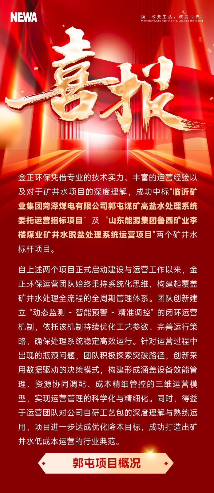 連續中標丨煙臺金正環保深耕礦井水處理項目